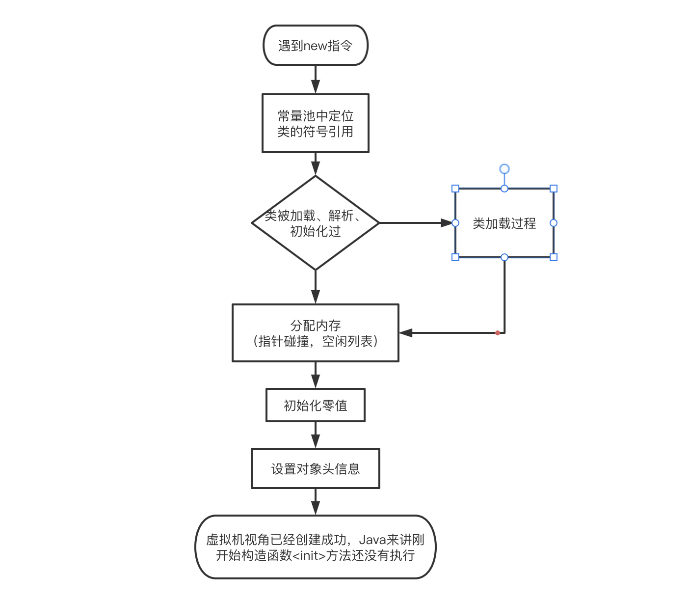 到这时,从虚拟机视角一个对象已经产生了,从Java程序视角来看,对象创建才刚刚开始——构造函数(