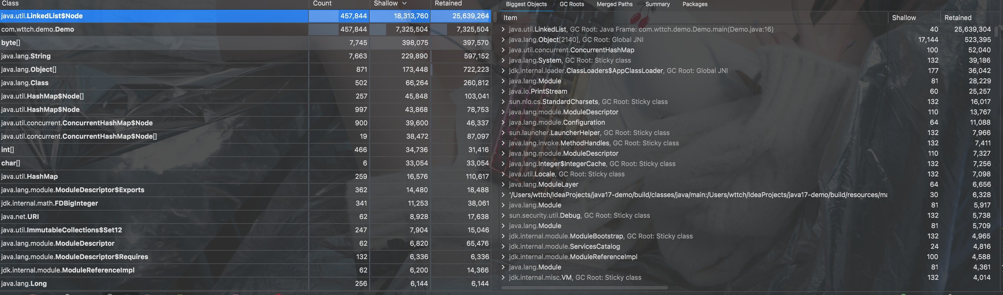 使用工具(如Eclipse Memory Analyzer,Idea也可以直接打开.hprof文件)分析,先确认是内存泄漏(Memory Leak)还是内存溢出(Memory Overflow)。